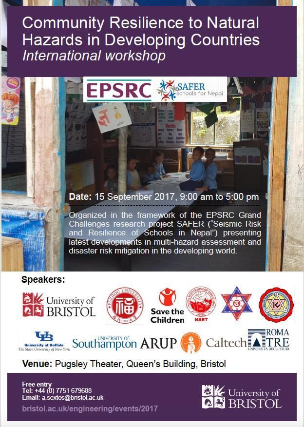 An international Workshop on “Community Resilience to Natural Hazards in Developing Countries” is organised in the framework of the EPSRC Global Challenges research project SAFER (“Seismic Risk and Resilience of Schools in Nepal”), presenting the latest developments in multi-hazard assessment and disaster risk mitigation in the developing world.