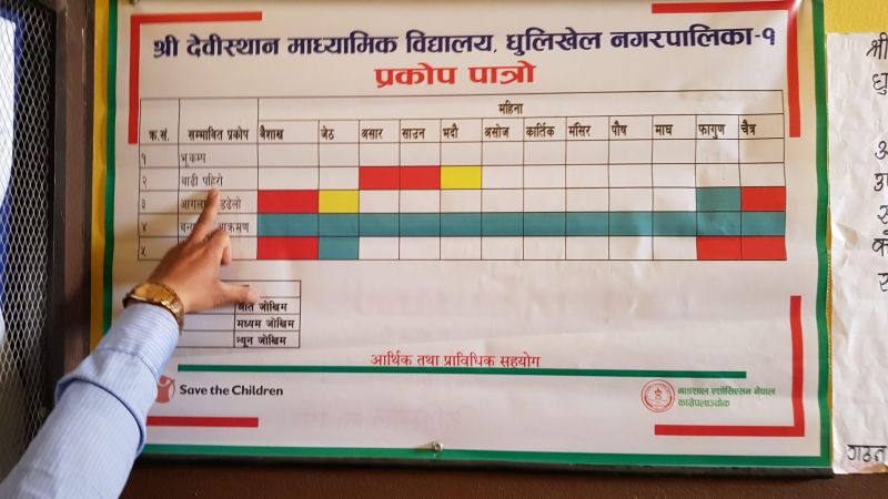 Hazard awareness table in the Shree Devisthan Secondary School in Kavrepalanchowk hashtag#Nepal. Earthquake Risk is in the first row. It is not empty or zero, it just can happen in any given month so everyone needs to be prepared!